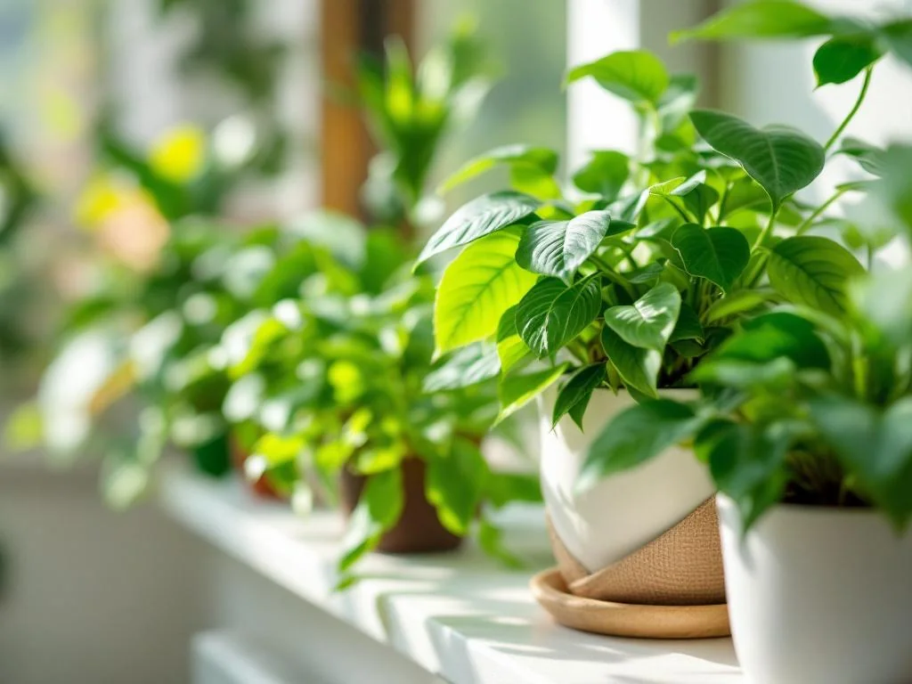 - Plantes à faible luminosité : comme le pothos, le zamioculcas ou la sansevière, qui tolèrent des espaces peu éclairés.