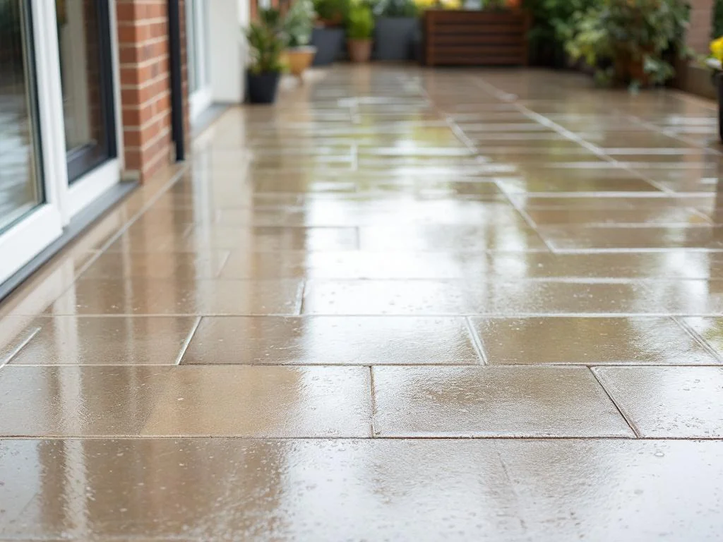 Après une pluie soudaine, la terrasse se couvre rapidement de taches brunes. Les joints deviennent blanchis à cause de la boue projetée depuis les massifs. Beaucoup utilisent alors un nettoyeur haute pression, dépensant des dizaines de litres d’eau pour nettoyer les dalles, avant que la prochaine pluie ne recommence le même cycle. Ce nettoyage répétitif, combinant balai, jet d’eau et Karcher, peut rapidement devenir fatigant.